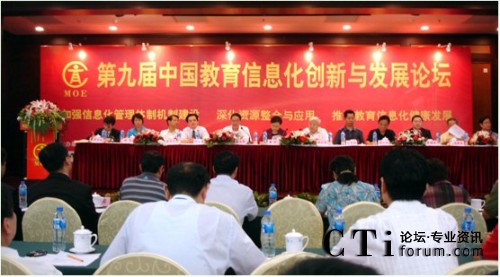 CTI論壇(ctiforum)07月16日消息: 2009年7月12日~7月13日,由教育部教育管理信息中心主辦的“第九屆中國教育信息化創(chuàng)新與發(fā)展論壇”在北京中苑賓館隆重召開。來自各級(jí)教育行政部門的相關(guān)領(lǐng)導(dǎo),各類學(xué)校的主管校長、信息化部門負(fù)責(zé)人參加了此次論壇,開幕式上教育部副部長魯昕同志發(fā)表了重要講話,為教育事業(yè)的改革與發(fā)展指明了方向。