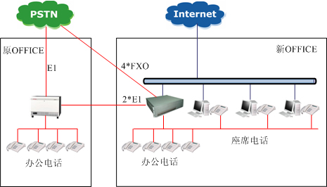 總部目前已有電話(huà)用戶(hù)交換機(jī)一臺(tái),滿(mǎn)足總部所有員工的電話(huà)需要,而分部需要新建電話(huà)網(wǎng)絡(luò),使之和總部能組網(wǎng),滿(mǎn)足短號(hào)互撥,不產(chǎn)生費(fèi)用的要求。