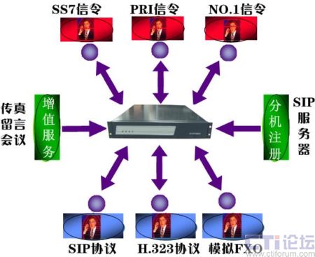 傳統(tǒng)信令協(xié)議方式包括N0.7信令、NO.1信令、ISDN-、 FXO(環(huán)路中繼)VOIP 信令協(xié)議包括SIP、H.323,同時(shí)支持多種協(xié)議/多種中繼的接入,不用增加、更換任何硬件設(shè)備和任何配件即可靈活地實(shí)現(xiàn)傳統(tǒng)交換機(jī)與軟交換網(wǎng)絡(luò)的無(wú)縫連接,為企業(yè)實(shí)現(xiàn)IP通信降低了門(mén)檻。