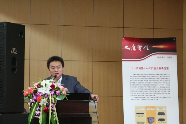 大唐高鴻寬帶產品事業(yè)部產品經理周立飛在演講中介紹了大唐高鴻的VoIP產品及呼叫中心解決方案,使與會代表深入了解了大唐高鴻的VoIP產品線及進軍呼叫中心行業(yè)的整體技術思路。中國萬網客服總監(jiān)宋瑛橋作為客戶代表,介紹了VoIP產品在呼叫中心領域的實際應用,給各方與會代表以很大的啟發(fā)。最后,大唐高鴻寬帶產品事業(yè)部副總經理潘浩儒介紹了大唐高鴻的新渠道政策并分析了合作優(yōu)勢,為今后大唐高鴻與呼叫中心行業(yè)廠商的合作打下了基礎。
