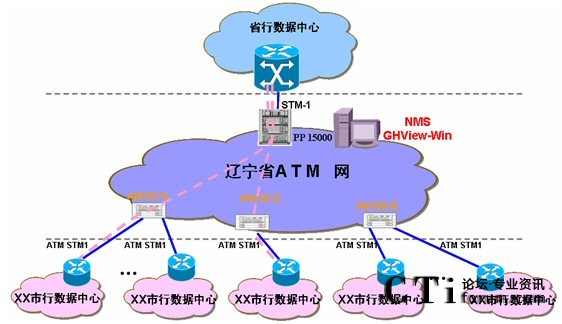 采用大唐高鴻獨立研發(fā)的電信級寬帶多業(yè)務接入復用交換機AM100-E設備,充分利用其體積小、ATM端口密度高、交換功能強大的特點,將各個市數據中心通過ATM方式接入到所屬區(qū)域的通信節(jié)點,由AM100-E設備實現ATM接入匯聚,并通過ATM端口匯聚交換到中心點。