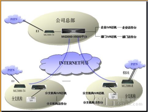 - 企業(yè)、部門和分支機構(gòu)可以采用MG3000-T4或Mg3000-R與PSTN互通。