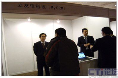 在隨會附設的展臺前,MyCRM更是受到不少參會企業(yè)的關注。圖為MyCRM咨詢顧問為參會企業(yè)家講解MyCRM系統(tǒng):
