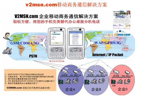 從美國人貝爾1876年發(fā)明電話一百多年來,當(dāng)電話進(jìn)入企業(yè)辦公后,企業(yè)利用電話通信技術(shù)為企業(yè)的經(jīng)營帶來了溝通協(xié)作的高效率,傳統(tǒng)PSTN電話網(wǎng)絡(luò)的時(shí)代企業(yè)都是自購和部署傳統(tǒng)的PBX(私有交換系統(tǒng)或集團(tuán)電話系統(tǒng))或采用PSTN固網(wǎng)運(yùn)營商提供的CENTREX(匯線通,集線通)來滿足企業(yè)對外的總機(jī)和內(nèi)部分機(jī)之間通信的需要、到了移動(dòng)通信的時(shí)代,也就是前兩年移動(dòng)運(yùn)營商(中國移動(dòng)、中國聯(lián)通)為了開發(fā)企業(yè)的通信市場推出了我們稱為“第一代的移動(dòng)總機(jī)”或“商務(wù)總機(jī)”。而IP互聯(lián)網(wǎng)前幾年的迅速發(fā)展以及NGN下一代網(wǎng)絡(luò)發(fā)展逐漸成熟并開始進(jìn)入商用,F(xiàn)MC(Fixed-mobile