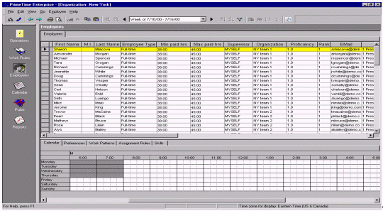 除個(gè)人信息以外,還有每個(gè)人的技巧應(yīng)用能力和工作效率也必須要記錄在系統(tǒng)之中,工作日程和預(yù)測模型的制定是否合理主要看員工的工作時(shí)間和工作效率。圖6展示的就是典型的員工排班界面。這些信息使用了ACD的數(shù)據(jù),預(yù)測某個(gè)技能組在特定的時(shí)間需要多少個(gè)員工才能應(yīng)付預(yù)測出的電話量。WFMS系統(tǒng)可以通過各種不同的渠道來體現(xiàn)和存儲(chǔ)這些人員信息。