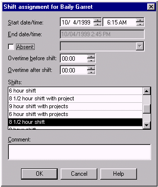 在這個(gè)模版中,顯示了員工Garret在1999年11月4日的個(gè)人日歷,里面體現(xiàn)了Garret從早上6:15到下午14:45的正常工作時(shí)間。