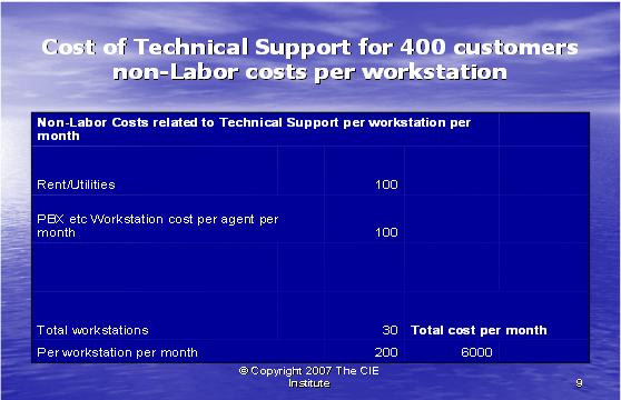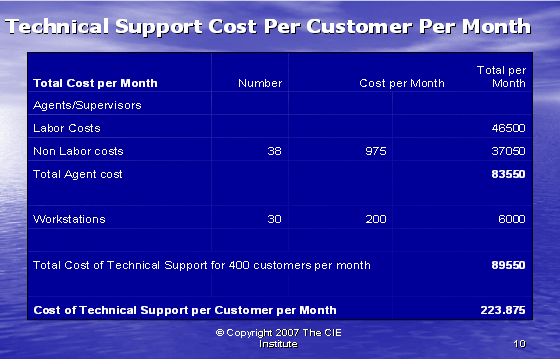 最后,我們可以如同下面圖表10所示,把所有的信息放在一起。每個客戶的技術(shù)支持的實際成本包括間接人工成本和工作場地成本,這是服務(wù)一個客戶所花費(fèi)成本的正確的反映。