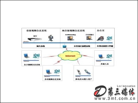 此外,為保證外出領(lǐng)導(dǎo)或員工不會錯(cuò)過任何一次重要會議,該套系統(tǒng)需要支持與普通電話、手機(jī)等語音終端的實(shí)時(shí)接入,而專網(wǎng)外計(jì)算機(jī)桌面終端地接入,可保證外出的干部能夠通過普通計(jì)算機(jī)參加重要會議或培訓(xùn)。該平臺還要能夠通過升級支持3G技術(shù)的接入,從而使整套系統(tǒng)能夠順應(yīng)未來通訊技術(shù)的發(fā)展。