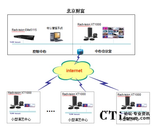 通過多次激烈的討論和無數(shù)次的論證,北京市財(cái)富中心領(lǐng)導(dǎo)最終決定通過打造一套高清視頻會(huì)議平臺(tái)系統(tǒng)來解決這一棘手的問題。財(cái)富中心的領(lǐng)導(dǎo)希望通過這套高清視頻會(huì)議平臺(tái)系統(tǒng)來提升全體員工的整體工作效率。該項(xiàng)目最終以RADVISION Elite MCU為多媒體通信平臺(tái)核心進(jìn)行搭建,前期以多媒體會(huì)議室及演藝中心為主要接入點(diǎn),通過RADVISION SCOPIA XT1000高清會(huì)議室終端來實(shí)現(xiàn)高清1080P的視音頻交互;同時(shí),希望在后期的建設(shè)中,能夠通過固定電話、移動(dòng)電話以及3G網(wǎng)絡(luò)的接入,來實(shí)現(xiàn)真正的多媒體統(tǒng)一通信。