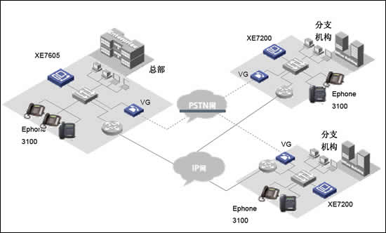 華為三康的XE7000IP語音解決方案是為企業(yè)提供融合的通信解決方案,在同一網(wǎng)絡(luò)上融合語音、數(shù)據(jù)和視頻信息,以滿足其日益增長的企業(yè)通信的要求從而解決了現(xiàn)代企業(yè)面對(duì)的傳統(tǒng)PBX語音服務(wù)和IP網(wǎng)絡(luò)數(shù)據(jù)服務(wù)分離問題。華為三康的XE7000IP語音解決方案構(gòu)建在企業(yè)現(xiàn)有IP數(shù)據(jù)網(wǎng)絡(luò)之上,以集中式管理方式提供企業(yè)全網(wǎng)范圍內(nèi)的呼叫控制以及管理,業(yè)務(wù)控制和信令分離使得用戶在管理上更加簡單透明,極大的節(jié)省了日常維護(hù)費(fèi)用和降低了維護(hù)難度。并使得客戶可以在任意地方實(shí)現(xiàn)IP語音數(shù)據(jù)接入,使得企業(yè)分布式辦公的不再因?yàn)槲锢砜臻g隔離而無法實(shí)現(xiàn)。