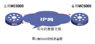 - ME5000采用雙機(jī)熱備技術(shù),2臺(tái)ME5000通過(guò)IP網(wǎng)絡(luò)(局域網(wǎng)、廣域網(wǎng))在線熱備,出現(xiàn)意外情況時(shí),備份ME5000將及時(shí)接替原ME5000將會(huì)議繼續(xù)召開(kāi),不需要終端進(jìn)行任何操作,保障會(huì)議延續(xù)。