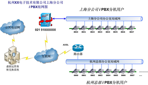iPBX系統(tǒng)上。實現內部通話免費的同時,也使杭州總部的用戶能夠直接享受優(yōu)惠的VoIP資費。
