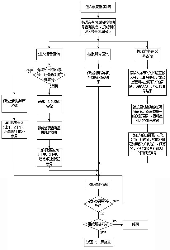 該系統(tǒng)主要采用語音技術(shù)實(shí)現(xiàn)航班信息查詢,系統(tǒng)的主業(yè)務(wù)流程如圖一至五示。