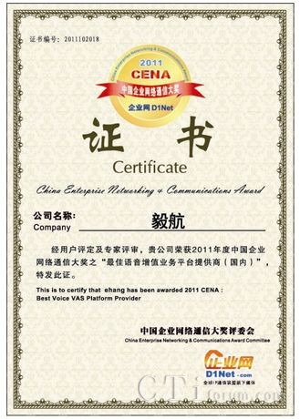 CTI論壇(ctiforum)10月31日消息(記者 潘婷婷): 10月20日,在上海舉行的展覽會上,廣州市毅航通信技術(shù)有限公司摘取了(國內(nèi))最佳語音增值業(yè)務(wù)平臺提供商的獎(jiǎng),體現(xiàn)了廣州市毅航通信技術(shù)有限公司在語音增值方面的市場領(lǐng)先地位。
