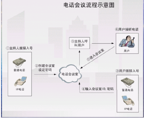 - 多方電話會議功能,最多可以實現(xiàn)16方通話。電話會議介紹(當(dāng)會議室中僅有一個人的時候,聽到的是等待音樂)。