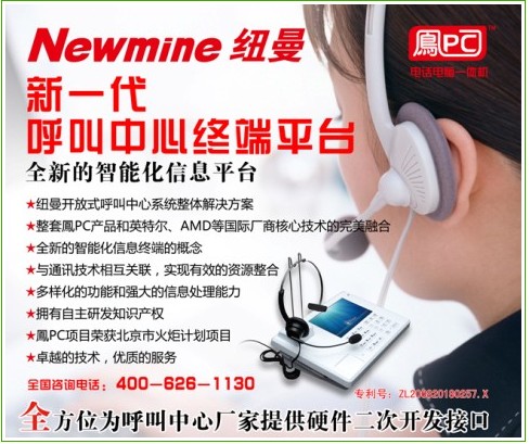 CTI論壇(ctiforum)4月28日消息(記者 張潔): 2011年4月12至13日,在五洲大酒店中國(guó)國(guó)際會(huì)議中心2011中國(guó)呼叫中心及企業(yè)通信大會(huì)(簡(jiǎn)稱CTI呼叫中心大會(huì))盛大召開,本屆展會(huì)展位近百個(gè),規(guī)模2000余平方米,吸引了國(guó)內(nèi)外行業(yè)觀眾數(shù)千人次參與,并將成為2011年度國(guó)內(nèi)及亞太地區(qū)規(guī)模最大的呼叫中心和企業(yè)通信展會(huì)。紐曼騰飛公司在本屆展會(huì)上推出包括智能商務(wù)電話,錄音系統(tǒng),鳳PC(電話電腦一體機(jī))等多種行業(yè)領(lǐng)先產(chǎn)品,吸引了大批行業(yè)內(nèi)人員及普通消費(fèi)者的關(guān)注。尤其鳳PC的推出更是本屆展會(huì)的一大亮點(diǎn)。