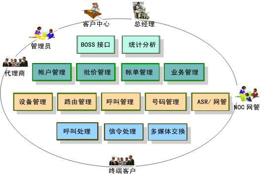 | 呼叫處理 | 設(shè)計(jì)原則: 處理接受終端用戶的呼叫請(qǐng)求。 代理向policy請(qǐng)求呼叫認(rèn)證系統(tǒng) 中每一個(gè)呼叫,負(fù)責(zé)上報(bào)給policy,并接受policy的指示。 功能: 設(shè)備管理:包括:設(shè)備信息管理、設(shè)備號(hào)碼管理、用戶的路由策略決定,統(tǒng)計(jì)分析、綜合查詢等等。 路由管理:為管理者全方位地管理系統(tǒng)擁有的路由資源,并對(duì)這些資源進(jìn)行開發(fā)提供決策支持。如為不同的客戶不同的要求,提供最適合的路由組合。 呼叫管理:監(jiān)控系統(tǒng)現(xiàn)在正在進(jìn)行的通話,讓管理者實(shí)時(shí)了解系統(tǒng)當(dāng)前的業(yè)務(wù)狀況。 ASR統(tǒng)計(jì):讓管理員實(shí)時(shí)了解系統(tǒng)的近一段時(shí)間的各類用戶,各路由的接通率,平均通話時(shí)長(zhǎng)等。 網(wǎng)管:提供管理員管理每個(gè)設(shè)備的信息,并提供遠(yuǎn)程登錄管理到Internet上任何注冊(cè)到系統(tǒng)上的設(shè)備。 帳戶管理:管理系統(tǒng)中的每一個(gè)帳戶,支持多級(jí)的帳戶管理。上一級(jí)可以依據(jù)權(quán)限對(duì)下一級(jí)進(jìn)行管理。 批價(jià)管理:為各種帳戶提供與其相適應(yīng)的價(jià)格策略,以最低的成本最有效地激勵(lì)客戶。如定制打折,套餐等不同的定價(jià)策略. 帳單管理:為每個(gè)帳戶提供定時(shí)準(zhǔn)確帳單收據(jù)。可生成 Word、Excel、txt 等不同格式的帳單明細(xì)報(bào)表和統(tǒng)計(jì)報(bào)表。 業(yè)務(wù)管理:為每個(gè)用戶提供各種不同用戶所需要的業(yè)務(wù),并能快速的提供新的業(yè)務(wù)。如呼叫轉(zhuǎn)移,呼叫等待等業(yè)務(wù)。 |