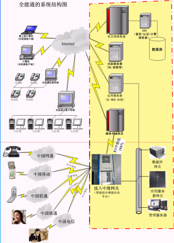 在和創(chuàng)世紀(jì)全能通的基礎(chǔ)下電信、網(wǎng)通、移動、聯(lián)通、鐵通、衛(wèi)通等電信運(yùn)營商可用來做下一代網(wǎng)絡(luò)(NGN)業(yè)務(wù)及運(yùn)營,虛擬電信運(yùn)營商和增值業(yè)務(wù)服務(wù)商、新興電信運(yùn)營商開展各種電信運(yùn)營、增值業(yè)務(wù)和搶占語音市場的利器。(具體有關(guān)‘如何用全能通平臺切入語音市場’,請來來電咨詢)