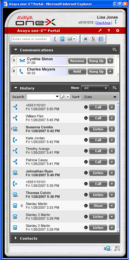 統(tǒng)一通信市場(chǎng)正在步入新的發(fā)展階段,新的產(chǎn)品與方案逐漸面世。在不久前舉行的全球企業(yè)通信盛會(huì)美國VoiceCon上, Avaya推出了全新的one-X Portal, 進(jìn)一步把統(tǒng)一通信從理念帶向?qū)嶋H應(yīng)用。 Avaya one-X Portal能夠讓員工通過基于網(wǎng)絡(luò)的界面,簡(jiǎn)便安全地使用各種通信功能,包括語音通信、消息管理、移動(dòng)辦公和會(huì)議等等。通過簡(jiǎn)便、創(chuàng)新的方式,這個(gè)方案讓使用者從桌面電腦獲得統(tǒng)一通信的全部功能,從而提高了效率、管理能力和業(yè)務(wù)連續(xù)性。
