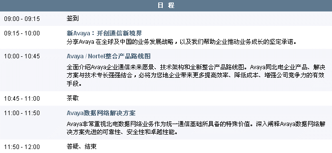| Avaya/Nortel整合產(chǎn)品線渠道招募會10城市 2010-03-16 |