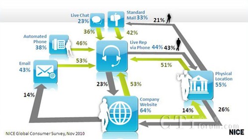 NICE最近宣布了其客戶渠道偏好調(diào)查的主要發(fā)現(xiàn),調(diào)查對象為美國、英國和澳大利亞境內(nèi)年齡段在18歲至65歲的2000多人。該調(diào)查分析了他們與金融服務(wù)、電信、零售、旅游、保險及公用事業(yè)等行業(yè)之間的首選聯(lián)絡(luò)渠道。調(diào)查顯示客戶往往依靠網(wǎng)絡(luò)、互動式語音應(yīng)答渠道(IVR)、聊天工具或者電子郵件作為與企業(yè)或服務(wù)供應(yīng)商的首要接觸點。然而,如果他們無法在首次聯(lián)絡(luò)過程中解決問題,則客戶聯(lián)絡(luò)中心便成為解決問題的二級渠道。