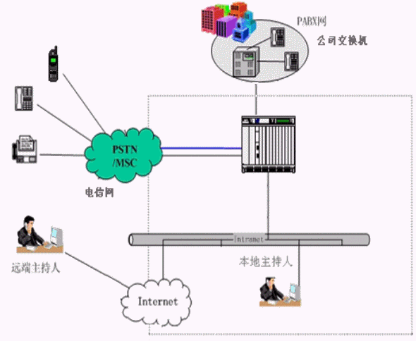 - 支持多種會議終端和其他通訊設(shè)備,如:普通電話、移動電話、會議電話終端、PC會議終端。