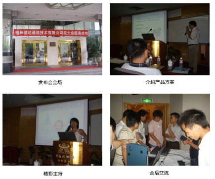 2006年8月19日下午,在廈門閩南大酒店沁園春報告廳,世紀網(wǎng)通和合作伙伴福州信達通信技術有限公司,聯(lián)合舉辦了世紀網(wǎng)通整體解決方案廈門站發(fā)布會。