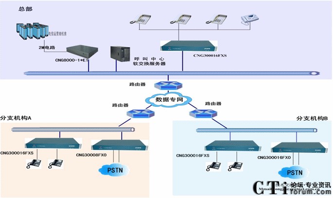 通常情況下座席必須安裝在呼叫中心平臺附近500米之內(nèi)的地方,在很多情況下,分布式的呼叫中心座席分布在各個城市。因此需要為呼叫中心平臺提供遠程的呼叫中心座席人員。本方案主要描述的是模擬語音網(wǎng)關(guān)在呼叫中心的應(yīng)用。