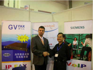 美國(guó)訊時(shí)捷科技公司作為IP-PBX專業(yè)提供商于2006年5月23-26日參加了最具權(quán)威的2006中國(guó)國(guó)際信息通信展覽會(huì),在上海光大會(huì)展中心的B019展位展示了Switchvox IPX與戰(zhàn)略合作伙伴Siemens配套IP終端話機(jī)。此次展會(huì),我們還推出了企業(yè)級(jí)新一代的IP傳真服務(wù)器GV-FAX,此次大會(huì)吸引了眾多全國(guó)的渠道代表、廠商、集成商和媒體參加,對(duì)產(chǎn)品感興趣的來賓絡(luò)繹不絕。