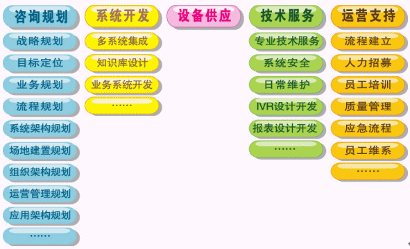 經(jīng)過認(rèn)真分析國內(nèi)企業(yè)實施客戶聯(lián)絡(luò)中心系統(tǒng)的現(xiàn)狀,正音科技公司提出了綜合咨詢規(guī)劃、系統(tǒng)開發(fā)、設(shè)備供應(yīng)、技術(shù)服務(wù)、運營支持等五個方面的客戶聯(lián)絡(luò)中心建置解決方案,不僅方便企業(yè)對整個建置過程進行整體上的把握,而且正音科技的專業(yè)團隊也能幫助企業(yè)實現(xiàn)最佳的效果。對于任何一個追求卓越客戶聯(lián)絡(luò)中心的企業(yè)來說,這五個方面都是作為一個整體,缺一不可的。