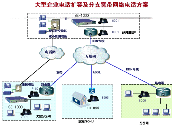 部署一臺Simplicity™ SE-1000,與原PBX連接,并通過IP網(wǎng)絡(luò)與總部的Simplicity™
