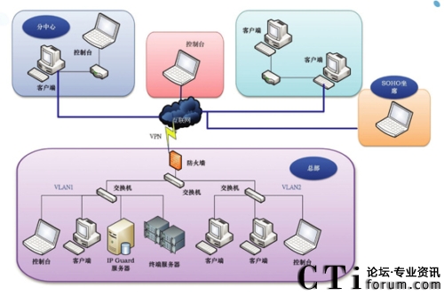 允許客戶經(jīng)由網(wǎng)絡(luò)連接到異地內(nèi)部網(wǎng)絡(luò)中,實(shí)時管理和查看異地的計算機(jī)使用情形。