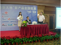 2007年8月15日下午,中國聯(lián)通、中寬網(wǎng)信"10175商務(wù)新天地"新產(chǎn)品全國巡展成都站在家園國際酒店順利召開。此站是這次全國巡展活動的第六站。成都站會議得到了中國聯(lián)通的大力支持,中國聯(lián)通數(shù)固部張宇、中國聯(lián)通四川分公司數(shù)固部副總經(jīng)理彭總、中國聯(lián)通四川分公司數(shù)固部鐘宇及中國聯(lián)通的各級代理商出席此次會議。