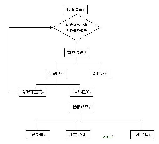 通過自動(dòng)臺(tái),輸入自己的投訴序號(hào)查詢投訴處理結(jié)果,自動(dòng)投訴處理結(jié)果查詢流程如下: