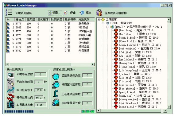 路由管理器是呼叫中心不可或缺的重要部分,一方面它擴(kuò)展了交換機(jī)ACD的功能,從而實(shí)現(xiàn)呼叫的智能分配、平衡負(fù)載;另一方面,它對座席的分組、狀態(tài)進(jìn)行動態(tài)的監(jiān)控和管理,并向其他相關(guān)應(yīng)用提供實(shí)時(shí)狀態(tài)信息和基礎(chǔ)統(tǒng)計(jì)數(shù)據(jù)。
