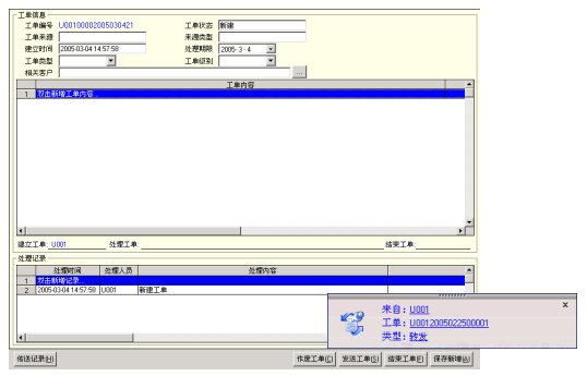 系統(tǒng)能通過接口的擴展可以處理來自包括FAX、SMS、 E_mail等其它來源的業(yè)務(wù),并能通過FAX、 E_mail等形式流轉(zhuǎn)工單。