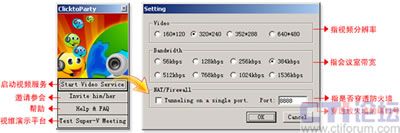 您可以隨時從Clicktoparty的官方網(wǎng)站 http://www.clicktoparty.biz 上下載免費的Clicktoparty安裝程序,按照向?qū)лp松的完成安裝過程。之后每次開啟QQ或MSN軟件的時候,與QQ好友及MSN聯(lián)系人的聊天窗口右下角,都會自動懸浮Clicktoparty操作窗口。點擊Start Video Service按鈕,對方就可以在聊天窗口中收到邀請信息,點擊“接受”按鈕后雙方自動啟動并進(jìn)入Clicktoparty軟件的主界面。您還可以以同樣的操作步驟,陸續(xù)邀請其他好友或聯(lián)系人加入,之后就可以享受Clicktoparty帶給您的強大功能和美好體驗,包括專業(yè)級的音視頻實時溝通、多人文字交流及私聊、桌面共享及遠(yuǎn)程協(xié)助、高速的文件傳輸、各種文檔的在線演示和討論等。