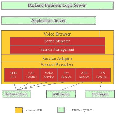 聲通技術(shù)的Amany IVR是集流程編輯環(huán)境、語法解析器和執(zhí)行平臺為一體的通用語音平臺,在這基礎(chǔ)上增加了CTI中間件和TAPI/WAV等方面的技術(shù)支持,使它不僅能作為一個獨(dú)立的語音應(yīng)答系統(tǒng)使用,而且可以作為呼叫中心理想的IVR服務(wù)器,并且可以作為外撥服務(wù)器、傳真服務(wù)器、語音門戶網(wǎng)站系統(tǒng)使用,是一個具有國際先進(jìn)水平的綜合性語音平臺;所有的可選功能模塊通過獨(dú)有的Plug-in技術(shù)可實(shí)現(xiàn)功能模塊動態(tài)卸載,使客戶可以挑選自己需要的功能模塊,在將來需要的時候在配置相應(yīng)的功能模塊,使客戶成本大大降低,同可以保證將來系統(tǒng)平滑升級,使用擁有更多的選擇。