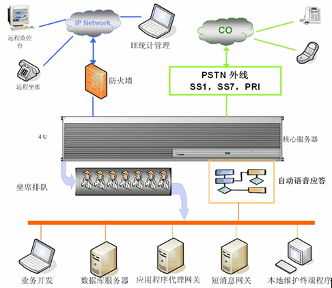 中科訊博 Dr-Tels中間件平臺結(jié)合當前聲訊特點,使CTI(Computer Telecommunication Intergration )技術(shù)和Internet技術(shù)相融合,以開放式結(jié)構(gòu)結(jié)合各業(yè)務單元及數(shù)據(jù)庫系統(tǒng)的應用平臺,提供綜合性的語音服務和互聯(lián)網(wǎng)服務。