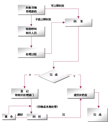 整個(gè)網(wǎng)絡(luò)采用只在集中受理中心設(shè)立一個(gè)集中監(jiān)控系統(tǒng),負(fù)責(zé)監(jiān)控全網(wǎng)的客戶(hù)業(yè)務(wù)、服務(wù)、技術(shù)支持和投訴等等業(yè)務(wù),該系統(tǒng)基于事件管理的思想,提供包括創(chuàng)建、解決、分配、反饋、跟蹤、回訪等節(jié)點(diǎn)在內(nèi)的閉環(huán)處理模式。例如系統(tǒng)可以根據(jù)客戶(hù)反映問(wèn)題的時(shí)間以及緊急程度,按照系統(tǒng)約定的處理時(shí)限對(duì)處理過(guò)程實(shí)時(shí)跟蹤和記錄,當(dāng)處理超時(shí)時(shí)回自動(dòng)給出報(bào)警信息,提示相關(guān)的操作人員及主管人員。同時(shí)根據(jù)約定還可以將受理的問(wèn)題按照約定的方式自動(dòng)發(fā)送到相關(guān)的處理部門(mén),由處理部門(mén)進(jìn)行處理。