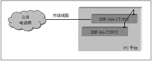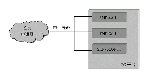 單純的語(yǔ)音系統(tǒng)(不需要座席,傳真等附加功能),可以采用SHP-4A、SHP-8A和SHP-16A系列的模擬線語(yǔ)音卡來(lái)構(gòu)成,并且不需要連接卡間交換總線,這類(lèi)系統(tǒng)如證券電話委托系統(tǒng),語(yǔ)音信箱留言系統(tǒng),銀行稅務(wù)查詢(xún)催繳系統(tǒng)等,其典型系統(tǒng)結(jié)構(gòu)如下: