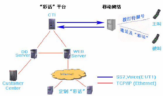 IVR:提供各種"彩話"、 用戶通過撥打IVR定制"彩話"、 通話過程中,用戶可進入IVR點播"彩話"