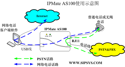 IPMate AS100專為支持SKYPE通話與普通電話機的連接設計。具有安裝方便,容易使用,可靠性高, 以及高品質話音等特點。