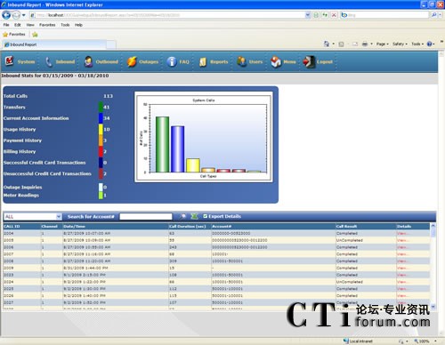 該公用事業(yè)部門很快發(fā)現(xiàn)他們所管理的呼叫量出現(xiàn)很大的變化,尤其是在賬單的支付、信用卡的處理和賬戶史的查詢等方面。2007年1月,公用事業(yè)機(jī)構(gòu)的OnCall系統(tǒng)所管理的報告日志顯示有2,694個呼叫,很多天都顯示