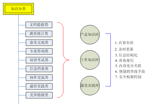 二、實(shí)際工作中,以知識(shí)庫(kù)形式管理和運(yùn)作的信息數(shù)據(jù)主要包括:產(chǎn)品知識(shí)庫(kù)、工作知識(shí)庫(kù)、最佳實(shí)踐庫(kù)。