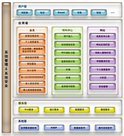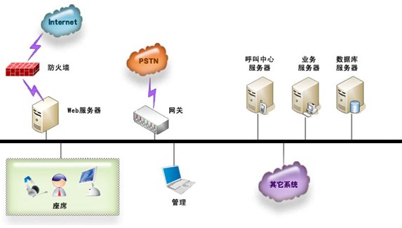 用戶層是呼叫系統(tǒng)與系統(tǒng)使用者之間的聯(lián)系層。工作人員可以通過瀏覽器進(jìn)入系統(tǒng)的業(yè)務(wù)部分進(jìn)行工作,處理相應(yīng)事務(wù);用戶可以通過電話打入系統(tǒng)的呼叫中心部分,獲得自動或人工服務(wù),也可以通過Email、短信、傳真等方式與系統(tǒng)聯(lián)系;同時,系統(tǒng)可以進(jìn)行電話外撥,聯(lián)系相關(guān)部門或進(jìn)行主動服務(wù)。