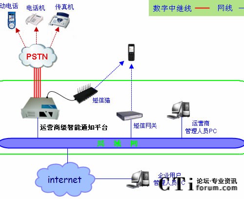 運(yùn)營(yíng)商管理人員通過(guò)局域網(wǎng)或者internet網(wǎng)絡(luò)訪問(wèn)智能通知平臺(tái),管理和維護(hù)企業(yè)用戶的帳戶信息,并為企業(yè)用戶提供個(gè)性化功能配置。