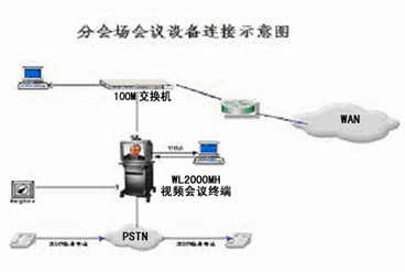 在各分會(huì)場(chǎng),提供100M快速交換以太網(wǎng)端口連接分會(huì)場(chǎng)會(huì)議終端WL-2000MH,以上設(shè)備分別通過(guò)綜合信息網(wǎng)提供的100M快速交換以太網(wǎng)接入主會(huì)議系統(tǒng)網(wǎng)。另外,在分會(huì)場(chǎng)預(yù)留一條電話備份線路,也可以用音頻撥號(hào)方式撥入,用參加視頻會(huì)議。