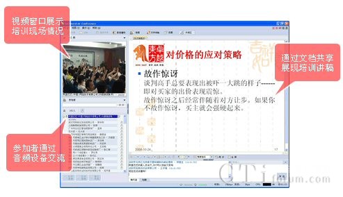 利用紅杉樹網(wǎng)絡(luò)視頻會(huì)議,培訓(xùn)會(huì)現(xiàn)場(chǎng)的講師、成功網(wǎng)商通過網(wǎng)絡(luò)與其他會(huì)員“面對(duì)面”,使用語(yǔ)音、文字等方式對(duì)現(xiàn)場(chǎng)的講師和網(wǎng)商進(jìn)行提問、并參與討論。這種方式可以讓會(huì)員不再因?yàn)榈赜、時(shí)間限制而錯(cuò)失培訓(xùn)機(jī)會(huì)。