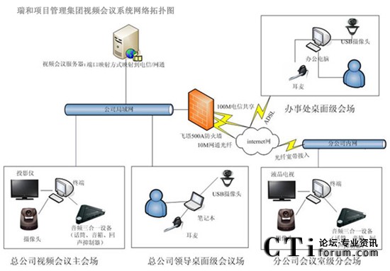 瑞和項目管理集團網(wǎng)絡(luò)基礎(chǔ)建設(shè)以后,各個分支機構(gòu)通過ADSL接入到互聯(lián)網(wǎng),一般每個分支單位大約5人左右,負責1個省的業(yè)務(wù)。在現(xiàn)有的網(wǎng)絡(luò)基礎(chǔ)上構(gòu)建了XView迅流視頻系統(tǒng),來滿足各地之間的溝通需求,系統(tǒng)的大范圍使用大大的提高辦公效率,節(jié)省時間及會議成本。隨著各部門遠程通信需求日益增多,充分發(fā)揮現(xiàn)有網(wǎng)絡(luò)優(yōu)勢,根據(jù)瑞和項目管理集團實際規(guī)模,對XView迅流視頻會議系統(tǒng)進行擴容到全國50個重點分支,改造以后XView迅流視頻會議系統(tǒng)作為公司主要通訊手段。實現(xiàn)各個分公司、辦事處充分應(yīng)用網(wǎng)絡(luò)視頻會議系統(tǒng)進行音頻、視頻和數(shù)據(jù)的多方溝通,提高辦公效率。